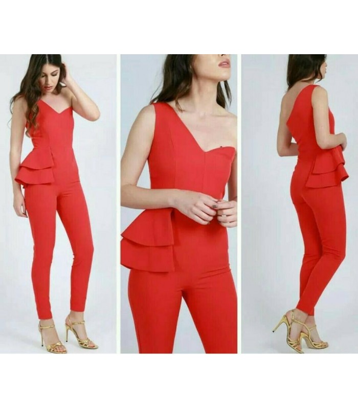 Mono con escote corazon ajustado y adorno volante