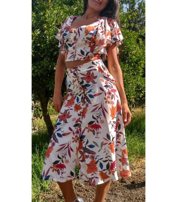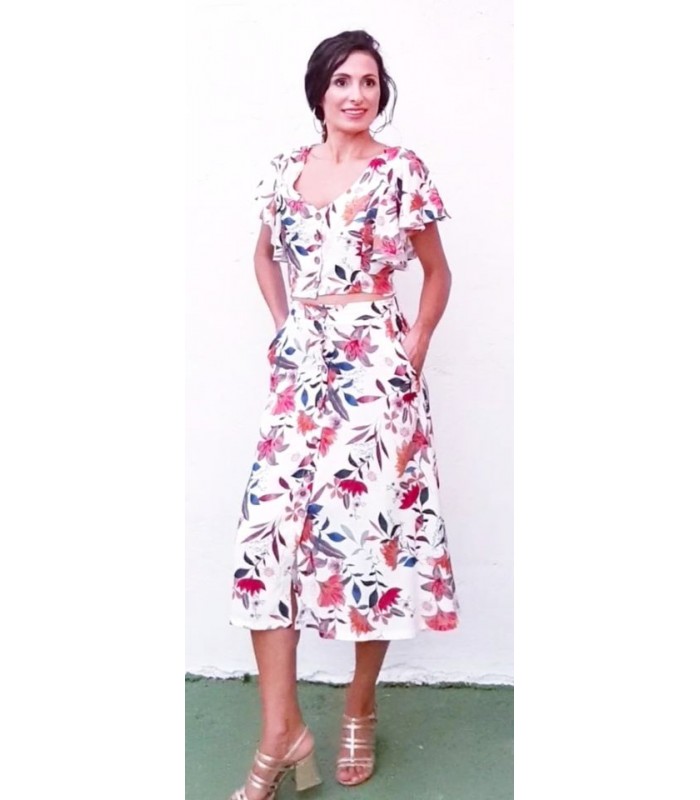 Falda estampada abotonada